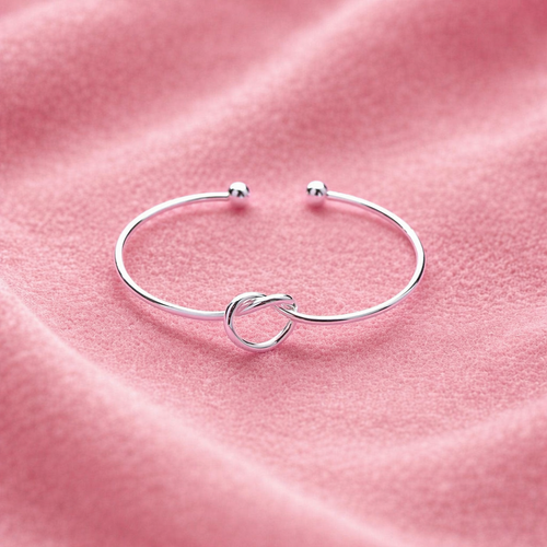 Bracelete em Aço Inoxidável com Nó Central e Extremidades Esféricas